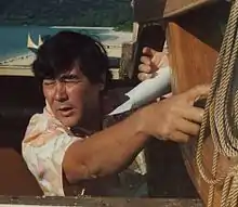 Herbert Kawainui Kāne (June 21, 1928 – March 8, 2011), considered one of the principal figures in the renaissance of Hawaiian culture in the 1970s, was a celebrated artist-historian and author with a special interest in the seafaring traditions of the ancestral peoples of Hawaiʻi. Kāne played a key role in demonstrating that Hawaiian culture arose not from some accidental seeding of Polynesia, but that Hawaiʻi was reachable by voyaging canoes from Tahiti able to make the journey and return. This offered a far more complex notion of the cultures of the Pacific Islands than had previously been accepted.[2] Furthermore, he created vivid imagery of Hawaiian culture prior to contact with Europeans, and especially the period of early European influence, that sparked appreciation of a nearly forgotten traditional life. He painted dramatic views of war, exemplified by The Battle at Nuʻuanu Pali, the potential of conflicts between cultures such as in Cook Entering Kealakekua Bay, where British ships are dwarfed and surrounded by Hawaiian canoes, as well as bucolic quotidian scenes and lush images of a robust ceremonial and spiritual life, that helped arouse a latent pride among Hawaiians during a time of general cultural awakening.[1]