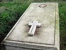 Chapman celebrated New Year in London before travelling north on a scouting trip to see Bury play Notts County on 1 January 1934.[94] The following day, he travelled to his native Yorkshire to watch Sheffield Wednesday, Arsenal's next opponents, before spending a final night in his home town of Kiveton Park.[95] He returned to London nursing a cold but was well enough to watch an Arsenal third-team match against Guildford City. Soon afterwards, his illness suddenly worsened; pneumonia set in, and Chapman quickly succumbed. He died in the early hours of 6 January 1934 at his home in Hendon.[89] He was buried four days later in St Mary's Churchyard, Hendon.[4]