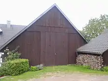 The first movement is "literally a two-part polyphony of nailing boards into the roof of a wooden shed".[10] The score specifies that the two players use a type of roofing (or carpenter's) hammer commonly used in Germany, with one long, tapered point. In addition to ordinary nailing, "all timbres that can possibly result from the contact between hammer or fingers with the nails or wood should be musically exploited" including stroking the heads of different-sized nails with the hammer, quivering the tapered point of the hammer rapidly between two nails or rows of nails, sustained pattering of the broad side of the hammer on two nail heads, or rapid "trilling" of the hammer on a nailhead. These varied sounds follow a formal process in five stages, leading from ordinary nailing to a final, very delicate phase with "individual short trills, soft rebounds, … and magically iridescent timbres". The main, nailing duet is accompanied intermittently by a clarinetist who practices fragments of the melodic formula that will figure later in the fourth movement. The two roofers occasionally whistle bits of what they hear the clarinetist play. This movement should have "a strong formal effect, and communicate an impression of absolute precision".[11]