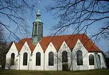 In addition there is evidence that the Minden monk, Landolf, undertook missionary work in the 9th century in the Örtze valley.[2] On the spot where, today St. Peter and St. Paul's now stands, a baptistry had been built in the period between 800 and 900 A. D. by the Christian mission sent out from Minden on a sandy loess island near the thingstead of the Muthwidde Gau. Its foundations were also discovered in 1957.