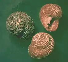 | Three views of a shell of Herpetopoma rubrum | |