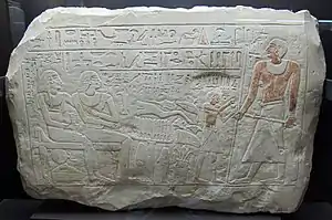 Hetepi was an ancient Egyptian official of the First Intermediate Period, around 2200 BC. He is known from his stela that is now in the National Archaeological Museum of Florence. The stela was bought in 1884–1885 by Ernesto Schiaparelli. The original provenance was not known,[1] but must come originally from Naqada, where there was a cemetery of the First Intermediate Period. Hetepi was sole friend and inspector of priests. From other sources it is known that these local inspectors of priests also had non-religious functions and were therefore the local governors of their towns. Henry George Fischer showed that the cemeteries near Naqada were those of Qus on the other side of the Nile. Hetepi was therefore governor of Qus.[2] On the stela is also shown his son Dagi, who bears the same titles and who was most likely the successor in office.