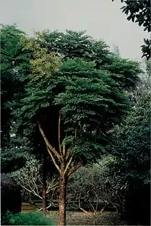 Heteropanax fragrans is an evergreen plant in the Araliaceae family. The leaves of this arboreal plant are fed on by the larvae of the Eri silk moth (Samia ricini). In the Mizo language it is known as Changkhen and in Assamese it is called Keseru. The tree is found in Assam; Bangladesh; Cambodia; South Central China; China Southeast; Eastern Himalayas; Hainan; India; Myanmar; Nepal; Vietnam; Western Himalayas; Thailand.[1][2]