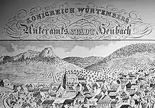 Heubach was first mentioned in 1234 in association with knight Hainricus de Hôbach. Rosenstein Castle, which is located on Rosenstein mountain, was first mentioned in 1282. At the end of the 13th century, Heubach and Rosenstein came into the possession of the Counts of Oettingen, before falling to the Counts of Württemberg in 1358. Subsequent to the victory of Emperor Charles IV over Eberhard II, Count of Würtemberg, in 1360 Heubach and Rosenstein fell to the Kingdom of Bohemia. However it was transferred back to Württemberg in 1377. In 1413 Heubach was enfeoffed to the Barons of Woellwarth fiefdom. Georg von Woellwarth left the spur castle on Rosenstein mountain in 1524 and built a castle in Heubach. In 1579 Duke Ludwig von Wuerttemberg purchased Heubach and Rosenstein and chartered Heubach by granting town privileges. The town hall was built in 1581. In the course of the Thirty Years' War between 1618 and 1648, Heubach was nearly wiped out and the population fell to around 10 people, but due to efforts of Württemberg's government it was rapidly rebuilt and resettled. On April 25, 1807 Oberamt Heubach was merged with Oberamt Gmünd. With the municipal reform of 1938 Oberamt Gmünd was transformed into Landkreis (district) Schwäbisch Gmünd. In the course of the district reform of 1973, Heubach now belongs to the Ostalbkreis district.