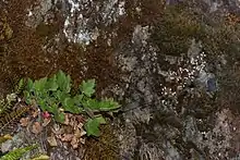 It is native to western North America from British Columbia to California, where it grows on rocky slopes and cliffs.