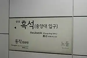 Heukseok (Chung-Ang Univ.) Station is a station on Line 9 of the Seoul Subway.