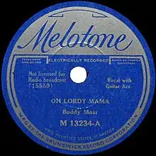 Buddy Moss' "Oh Lordy Mama" is an uptempo twelve-bar blues with distinct vocal phrasing:
