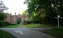 There was a common, located to the northwest of the village, until enclosed into Heydon Park by the mid-19th century. The early 19th-century expansion of the Park also resulted in the closure to the public of the through-road, shown on the Tithe map (c. 1836–50)[13] that ran from the northwest at Corpusty Road, along/through the common, passing the parish church and Earle Arms coaching inn (along a stretch that remains a highway), then across/around the village green and then passing Heydon Grange and Park Farm to the southeast at Dog Corner; resulting in the village since being only accessible by public highway via the one road from the south.