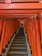 The shrine has escalators to help people climb up the tall hill it is located on. It also has a large series of Torii similar to those of Fushimi Inari Taisha[2]
