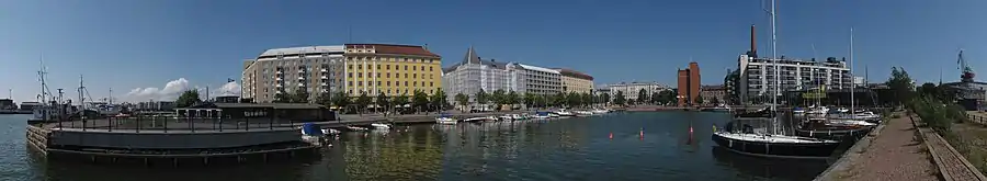 Hietalahti's main attractions include Helsinki's most popular flea market,[2] the Hietalahti market hall, a luxurious hotel and a couple of seafood-themed restaurants.[3] The Helsinki International Bible Center and a Hare Krishna organisation are also located in the area. The outdoor sculpture Olo n:o 22 can be found around the harbour basin.[4]