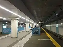The station currently consists of one underground island platform and four tracks. Express trains typically utilize the outer (express) tracks, bypassing the station, while local trains usually stop at the station on the inner (local) tracks.[3]