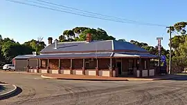 Like many towns, Highbury came into existence with the construction of the Great Southern Railway, when a siding was built here in 1894. Highbury was originally called Wolwolling, after Wolwolling Pool, a permanent pool in the bed of the Arthur River 7 km to the south-southeast.[3] It was gazetted under that name in 1905, but the local progress association complained that the name was too similar to others, causing letters and goods to go astray to other places. At a public meeting the names submitted to ballot were Highbury, Scottdale, and Linton. Linton was the preferred name, however it was renamed Highbury from August 1906.[4][5]