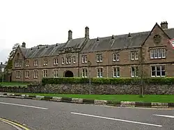 The oldest part of the current structure is the main frontage on Ardross Road which was commissioned by the Northern Counties Collegiate School, an educational establishment which was founded with strong connections with the Army and India in 1873.[2] It was designed by Alexander Ross in the Gothic Revival style, built in coursed stone and was completed in 1876.[1][3][4]