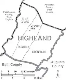 - ↑ "County of Highland - Magisterial Districts" (PDF). Highland County. Archived (PDF) from the original on October 9, 2022. Retrieved December 27, 2013.