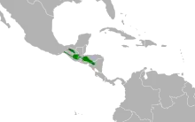 Its natural habitat is subtropical or tropical moist montane forest. Its population has declined much in recent times: Listed as a species of Least Concern in 1994, it was uplisted to Near Threatened in 2000 and, as it was determined to be less common than previously believed, to Vulnerable in the 2007 IUCN Red List.[3]
