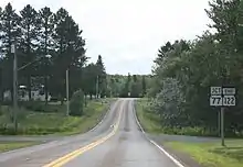 After passing the lake to the north, WIS 122 enters the Town of Saxon. It continues northward through the community of Saxon, meeting CTH-B and crossing a Canadian National railroad line within the community. The roadway intersects US Highway 2 (US 2) north of the community and continues northward to another intersection with CTH-B. At this point, WIS 122 briefly turns to the northwest before heading north to a junction with CTH-A. The route then turns to the northeast and ends at the Montreal River, which marks the Michigan state line.[3] WIS 122 is one of two Wisconsin state highways, along with WIS 17, which terminate at the Michigan state line and are not continued as state highways in Michigan.