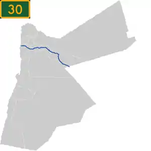 Highway 30 is an East-West Highway in Jordan. It starts at Saudi Arabia's border at Umari and connects it to Zarqa and Amman. Then it continues further west passing through Salt and ending in the western end of the country on Highway 65.