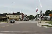 WIS 98 starts at an intersection with WIS 73 south of Greenwood. From this terminus, the highway runs eastward through agricultural areas in rural Clark County. In the city of Loyal, WIS 98 follows South Street through residential neighborhoods to a junction with Main Street. There, the highway turns north along Main Street through the downtown area to an intersection with Elm Street. WIS 98 turns east again to follow Elm Street out of town, returning to rural farm land in the process. The highway then follows Coles Corner Road to a junction with County Trunk Highway Y (CTH-Y) near the Coles Cemetery, where WIS 98 turns north for about one mile (1.5 km). Curving back to an easterly path, the highway enters Spencer on Clark Street running through more residential neighborhoods. WIS 98 ends at the intersection in the middle of town with WIS 13 (Pacific Street).[2]
