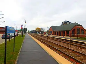 Highwood is one of two stations on Metra's Union Pacific North Line located in Highwood, Illinois. Highwood is located at 317 Green Bay Road. Highwood is 24.5 miles (39.4 km) away from Ogilvie Transportation Center, the southern terminus of the Union Pacific North Line.[2] In Metra's zone-based fare system, Highwood is located in zone E. As of 2018, Highwood is the 159th busiest of Metra's 236 non-downtown stations, with an average of 242 weekday boardings.[1]