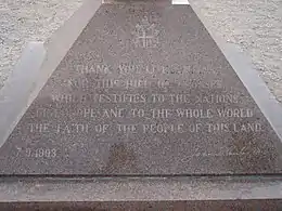 After the dissolution of the Soviet Union in 1990, the practice of Lithuanian cross-crafting became very popular.[13] Visitors were able to make crosses out of small twigs and rocks and tie them together with grass,[14] in order to show their support. Due to the symbolism of cross-crafting during the Soviet occupation, UNESCO named Lithuanian cross-crafting in the lists of good safeguarding practices and intangible cultural heritage.[15] The hill stood as a testament to the Lithuanian people's determination to preserve their religious and national identity during these times. As a result, in the post-Soviet years, the number of crosses exploded. Free from religious oppression, the Lithuanian public was able to practice their religious beliefs without fear of persecution. Due to its religious significance, it became a site of catholic pilgrimage. On September 7, 1993, Pope John Paul II visited the Hill of Crosses, declaring it a place for hope, peace, love, and sacrifice. In 2000, a Franciscan hermitage was opened nearby. The interior decoration draws links with La Verna, the mountain where St. Francis is said to have received his stigmata.[16]