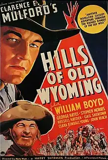 Hills of Old Wyoming is a 1937 American Western film directed by Nate Watt and written by Maurice Geraghty, the 10th film of the 66 Hopalong Cassidy movies.[1] The film stars William Boyd, George "Gabby" Hayes, Morris Ankrum, Russell Hayden, Gail Sheridan, John Beach and Clara Kimball Young, Russell Hayden makes his first (of 27 consecutive) appearances. The film was released on April 16, 1937, by Paramount Pictures.[2][3]