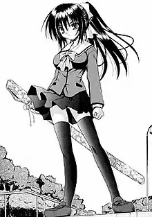 Reception of Himari's character in English-language media has been mostly positive. T.H.E.M. Anime Reviews called Himari an okay character when she is not threatening Yuto or getting upset at the other girls that he has around him.[25] While referencing the anime adaptation, Erin Finnegan from Anime News Network called the character designs in general "solid", aside from Yuto.[26] Paul Jensen, also from Anime News Network said that Himari is a good "demon girl with a dark side" heroine character. Jensen did say though that the overall character designs are starting to show their age seven years after the series' first release.[27] Chris Beveridge from Mania reviewed the third volume of the manga series which included a glimpse into her character. In the review he describes Himari's kiss scene in which she wants to experience what a kiss is like for the first time. Chris commented; "There's a pleasant innocence about her as she works through it and finds the situation turning to her favor for actually trying it".[28] In contrast, Ross Liversidge of UK Anime Network reviewed the first volume of the manga in which he called Himari's character overly "stereotyped". Ross also said that although she is "kick-ass" while using her sword, she has no idea about modern life.[29] Chris Kincaid from Japan Powered called Himari's anime appearance "interesting". In his review he compares her character to Inuyasha's manga title character as she has a protector mentality, but is "torn between the human world and her demon nature".[30]
