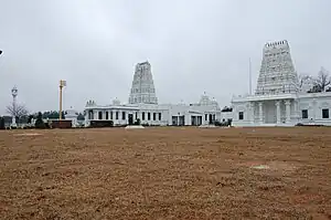The Hindu temple has two complexes – the older and larger shrine for Lord Venkateswara as the presiding deity, and the newer one consecrated in 2007,[5] with Lord Shiva as the presiding deity Because the Shiva temple here, is adjunct, to the Venkateshwara temple, Lord Shiva is known as Ramalingeshwara. In addition to the presiding deity, both complexes have shrines for other deities such as Padmavathi, Hanuman, Ganesha, Kala Bhairava, Navagragha etc.[6][7]