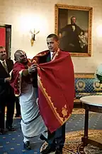 In September 2000, a joint session of Congress was opened with a prayer in Sanskrit (with some Hindi and English added), by Venkatachalapathi Samudrala to honor the visit of Indian Prime Minister Atal Bihari Vajpayee. The gesture was an initiative by Ohio Congressman Sherrod Brown, who requested the U.S. Congress House Chaplain to invite the Hindu priest from the Shiva Vishnu Hindu Temple in Parma, Ohio.[38] A Hindu prayer was read in the Senate on July 12, 2007, by Rajan Zed, a Hindu chaplain from Nevada.[39] His prayer was interrupted by a couple and their daughter who claimed to be Christian patriots, which prompted a criticism of candidates in the upcoming presidential election for not condemning the interruption.[40] In October 2009, President Barack Obama lit a ceremonial Diwali lamp at the White House to symbolize victory of light over darkness.