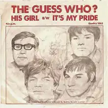 "His Girl" is a song written by Johnny Cowell and performed by The Guess Who. In its original recorded version, it reached #19 in Canada.[1] A remixed version, with an overdubbed string section and other embellishments, reached #45 in the United Kingdom[2] in 1967. The song was also released in the United States as a single in February 1967, but it did not chart.[3]