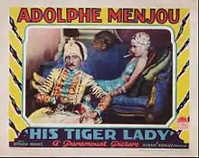 His Tiger Lady is a 1928 American silent drama film directed by Hobart Henley and written by Herman J. Mankiewicz, Alfred Savoir and Ernest Vajda. The film stars Adolphe Menjou, Evelyn Brent, Rose Dione, Émile Chautard, Mario Carillo and Leonardo De Vesa. The film was released on May 27, 1928, by Paramount Pictures.[1][2]