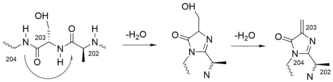 - ↑ Schwede TF, Rétey J, Schulz GE (Apr 27, 1999). "Crystal structure of histidine ammonia-lyase revealing a novel polypeptide modification as the catalytic electrophile". Biochemistry. 38 (17): 5355–5361. doi:10.1021/bi982929q. PMID 10220322.