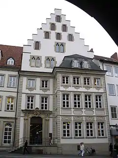 - The adjoining Lüntzelhaus (Lüntzel House) was originally built in 1755 in a baroque style. The name refers to a family to whom the house belonged in the 18th century.[13] Like the Wedekindhaus, it is used by the Municipal Savings Bank today.