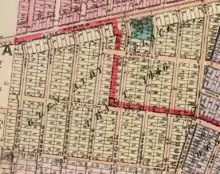 Glen Airy was a residential subdivision, sales for which were active in 1911 and 1912.[91][92][93] Streets included in the subdivision were variously described as 30th Avenue from 21st Street to West Adams Street and 28th and 29th avenues from 21st Street to West Adams (1924),[94] West Adams Street at the corner of Longwood Avenue[16] and "the western end of West Adams street".[95] An official subdivision map gives the boundaries as Adams Street on the north, roughly Mansfield Avenue on the east, Roseland Street on the south and the rear line of properties fronting on Edgewater Street on the west, with part of the tract being in the city and part outside of it.[96]