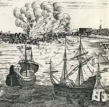 Among the first fires that broke out on a large scale prior to the city plan changes was the Great Fire in 1625 that devastated the southwestern parts of Stadsholmen. The fire began in the evening of September 1, 1625, in a house along the bottom at Kåkbrinken and extended all the way up to the West Long Street stone house, and for some time the German church was under threat. The fire lasted three days and destroyed a fifth of the infrastructure of Stockholm at the time.[7]