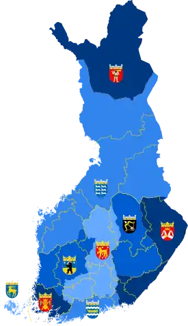The coats of arms of the historical provinces have served as a basis for the arms of the current administrative divisions, the regions of Finland.