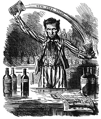 Newspapers continued to play a major political role. In rural areas, the weekly newspaper published in the county seat played a major role. In the larger cities, different factions of the party have their own papers.[57] During the Reconstruction era (1865-1877), leading editors increasingly turned against corruption represented by President Grant and his Republican Party. They strongly supported the third-party Liberal Republican movement of 1872, which nominated Horace Greeley for president.[58] The Democratic Party endorsed Greeley officially, but many Democrats could not accept the idea of voting for the man who had been their fiercest enemy for decades; he lost in a landslide. Most of the 430 Republican newspapers in the Reconstruction South were edited by scalawags (Southern born white men) – only 20 percent were edited by carpetbaggers (recent arrivals from the North who formed the opposing faction in the Republican Party. White businessmen generally boycotted Republican papers, which survived through government patronage.)[59][60]