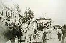 From 1931 on, this festivity was the biggest profane event in the city, loaded with strong symbolism. The feast originated from the various festivities commemorating the grape harvests and the agro-industrial fairs that the settlers held in small groups in their ravines. In 1931, these scattered festivities were brought together in a large municipal celebration, which received the name that lasts until today. Besides the direct trade of the products displayed in the big showcase that was the party (in the contact between the producers and other interested parties), there was the exchange of experiences and technical information to improve the conditions of cultivation and processing of the grape.[83] As noted by an observer of the press, "numerous were the visitors who with a pencil in hand in front of the varieties (of grapes) that were of interest took note of their characters and their names, to introduce them in their plantations, to improve their vineyard."[84]