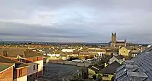 Kilkenny is the anglicised version of the Irish Cill Chainnigh, meaning Cell/Church of Cainneach or Canice.[7] This relates to a church built in honour of St. Canice on the hill now containing St. Canice's Cathedral and the round tower. This seems to be the first major settlement. The early Christian origin of the round tower suggests an early ecclesiastical foundation at Kilkenny.[8]