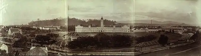 In 1874, Sultan Abdul Samad of Selangor accepted a British Resident in a system allowed the British to rule while the Sultan remained the head. In 1880, Kuala Lumpur was made capital of Selangor and the British colonial administration moved from Klang to Kuala Lumpur. In 1880, the state capital of Selangor was moved from Klang to the more strategically advantageous Kuala Lumpur by the colonial administration, and the then British Resident William Bloomfield Douglas decided that the government buildings and living quarters should be located to the west of the river, separate from the Chinese and Malay settlements along the east bank of the Klang River. Government offices and a new police headquarter was built on Bukit Aman, and the Padang was created initially for police training.[11] A police force of 2–300 was established by the British; most of them were Malays recruited from rural Malacca (plus a few Sikhs and Punjabis), and as many of them then brought their families here, they would form a significant part the Malay population in early Kuala Lumpur.[12] The government offices were later moved from Bukit Aman to a more conveniently located Sultan Abdul Samad Building facing the Padang, now known as Merdeka Square, which became the centre of the British colonial administration.[13][14]