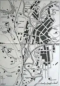This naturally attracted merchants who traded basic provisions to the miners in exchange for some of the tin. Two traders from Lukut, Hiu Siew and Yap Ah Sze, then arrived in Kuala Lumpur where they set up shops to sell provisions to the miners.[3][4] Kuala Lumpur was the furthest point up the Klang River to which supplies could conveniently be brought by boat; it therefore became a collection and dispersal point serving the tin mines.[5] The town, spurred on by tin-mining, started to develop beside the confluence of the Gombak and Klang rivers with the Old Market Square (Medan Pasar) its commercial centre. The Chinese mainly settled around the Market Square; the Malays, later also Indian Chettiars and Indian Muslims, resided further north in areas such as Kampung Rawa with Java Street (now Jalan Tun Perak) the boundary between the Chinese and Malay areas. Roads radiated out from the early town centre to other significant destinations; these roads connected Kuala Lumpur to Ampang (Ampang Road), then Pudu (Pudu Road) and Batu (Batu Road) where miners also started to settled in, as well as Petaling (Petaling Street) and Damansara (later part of Damansara Road).[6]