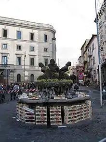 Upon Marcantonio Colonna's death an estimate of the value of his property was made, which was not completed until 1596: out of a total of 1,200,000 pontifical scudi, the fiefs of Marino and Rocca di Papa together were worth 472,727 scudi.[63] The successor to the victor of Lepanto was his son Cardinal Ascanio II Colonna, who did not make himself well liked by the population (who in 1599 rebelled against the cardinal,[63] giving reason for Pope Clement VIII to send a papal commissioner ad acta):[63] however, he was responsible for the resumption of the urban rearrangement work left unfinished by his father (who in 1577 had left for Palermo as Spanish viceroy of Sicily). During this period the walls of the inner courtyard of Palazzo Colonna were put in place,[61] and the baronial green areas of the Barco Colonna, in the valley of the Marana delle Pietrare near the Ferentano woods, and of the Colonna Gardens, close to the northern walls, were planned, precisely on the site of the communal lands already used for the cultivation of onions for sustenance of the poorest, a fact that caused discontent among the citizens.[68] Moreover, on October 3, 1594, the cardinal renounced the feudal right of ius super scadentiis over the lands of the vassals in exchange for a contribution of 2,000 scudi paid by the Marinese community.[63]