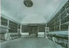 Between 1837 and 1838 a cholera epidemic developed in the Roman area. The City Council of August 12, 1838 made urgent decisions regarding a possible development of the epidemic in Marino, as suggested by the Supreme Tribunal of Health: 500 scudi were allocated to set up a sanitary hospital, "the requisition of linen beds not being allowed, and pecuniary subsidies from pious places and wealthy families to provide for the current expenses;"[99] in addition, it was considered to call a second doctor to the city in case the epidemic developed; and finally, it was determined appropriate to locate a place to bury any dead as a result of the epidemic.[100] At the end of the epidemic, since cholera had not claimed any victims in the city, the people of Marino dedicated the narrow escape to Our Lady of the People, a miraculous image kept at the basilica of St. Barnabas:[101] at a city council meeting on October 3, 1838, it was decreed that a silver lamp be donated, which the Confraternity of the Most Holy Rosary was to light in front of the sacred image.[102]