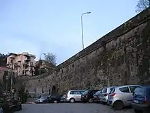Throughout all these military upheavals, the circle of walls would be rearranged, enriched by a moat -in 1269 the Cistercian monks of the convent of Santa Maria ad Nives of Palazzolo turned out to be landowners in Marino in the locality of "Boccafossati."[40]- and enlarged, towards the east with the so-called "New Chambers" and with the opening of a new gate towards Rome and towards Grottaferrata, Porta Giordana -probably so named in honor of the feudatory Giordano Orsini-.[38] Moreover, downstream from the Coste district, along the course of the Marana delle Pietrare near the peperino quarries, the tower of Ammonte was built,[38] which could not be ruled out as part of a larger defensive system downstream, as hypothesized by the scholar Giuseppe Tomassetti.[41]