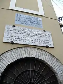 Later, in the war between Emperor Charles V of Habsburg and King Francis I of Valois of France, the Colonnas took the side of the imperials while Pope Clement VII sided with the French. This resulted in a papal monitorium against the Colonnas, dated November 7, 1526,[58] which was not enough to calm the Colonna's maneuverings: so in December 1526 Clement VII ordered an army to be armed, commanded by the mercenary captain Vitellozzo Vitelli and the papal legate Agostino Trivulzio, which razed fourteen of the Colonna's Latian fiefdoms, including Marino, Zagarolo, Gallicano, Artena, Subiaco and Cave.[52][59] During the destruction of Marino, the soldiers sent in force to the papal army from Velletri were particularly active: the occupants appropriated the miraculous image of the Madonna del Popolo, currently preserved in the basilica of San Barnaba, and the bells of the bell tower of the parish church of Santa Lucia. Tradition, however, has it that the Madonna del Popolo returned to Marino the day after the looting, by a miracle.[60]