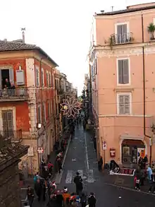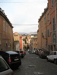 On July 14, 1837 at a meeting of the town council a decision was made to prohibit the transit, by means of a chain stretched in the middle of the road, of wagons coming from Rocca di Papa along the present-day via di Capo d'Acqua, between the localities of San Rocco and Capo Croce.[98] This resolution was made following the observation that the road had been much ruined by the continuous transit of heavy wagons coming mostly from neighboring Rocca di Papa.
