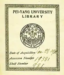 However, scholars who specialize in the history of Peiyang University have verified based on historical data. In fact, when Peiyang University was founded, the initial names of the schools were Peiyang University (北洋大学堂), Peiyang University (北洋大学堂) and its English “Pei-yang-ta-hsiieh-t'ang" appeared in the 1895 Peiking Tientisn Times and Zhili Province Times. Because the school used the "Tianjin Chinese and Western School Constitution" approved by Emperor Guangxu, it caused misinformation. [2]