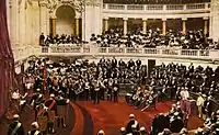 The new ruling dynasty would proceed to push Portugal to the limelight of European politics and culture, creating and sponsoring works of literature, like the Crónicas d'el Rei D. João I by Fernão Lopes, the first riding and hunting manual Livro da ensinança de bem cavalgar toda sela and O Leal Conselheiro both by King Edward of Portugal[76][77][78] and the Portuguese translations of Cicero's De Oficiis and Seneca's De Beneficiis by the well traveled Prince Peter of Coimbra, as well as his magnum opus Tratado da Vertuosa Benfeytoria.[79] In an effort of solidification and centralization of royal power the monarchs of this dynasty also ordered the compilation, organization and publication of the first three compilations of laws in Portugal: the Ordenações d'el Rei D. Duarte,[80] which was never enforced; the Ordenações Afonsinas, whose application and enforcement was not uniform across the realm; and the Ordenações Manuelinas, which took advantage of the printing press to reach every corner of the kingdom. The Avis Dynasty also sponsored works of architecture like the Mosteiro da Batalha (literally, the Monastery of the Battle) and led to the creation of the manueline style of architecture in the 16th century.