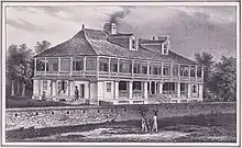Charles Gratiot, the second major merchant to relocate to St. Louis at the end of the American Revolution, also added to the wealth of the community. His English and trade skills allowed him to aid the Americans during the war, but in 1781, he relocated to the west bank, where he married Victoire Chouteau, daughter of Laclède and sister to Auguste Chouteau.[35] During the 1790s, he conducted trade with Americans migrating west, and he also operated a mill and distillery on his farm to the west of the village. Eventually through land grants and purchases, Gratiot became one of the largest landowners in the area, with his primary farm stretching west from present-day Kingshighway Boulevard to far beyond the city limits to present-day Big Bend Boulevard, and from the northern edge of present-day Forest Park to Chippewa Avenue on the south.[36] During his lifetime, Gratiot and his wife raised nine children to maturity in status and wealth (especially his son Charles Gratiot, a significant engineer and soldier), forming the basis of another group of St. Louis elites. The two merchant families of Gratiot and Cerre intermarried with the Chouteau family to create a society in the 1780s and 1790s that was dominated by French Creoles with marital ties to Spanish government officials, including lieutenant governors Piernas and Cruzat.[36]