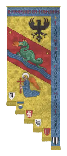 At the head of the Terni municipal apparatus stood six priors (in monthly office), with broad political and administrative powers. The legislative and advisory bodies were: the Council of Credenza (or of Cerna), composed, in addition to the Priors, of the Twenty-four of the people (as many per borough, or district, which were six: Fabri, Castello, Rigoni, Aultrini, Disotto, Amingoni), each of whom carrying a flag were called Banderari (hence the origin of the name of this social class); and twenty-four Boni viri.[38]