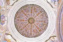 When Terni became part of the temporal power of the Church it was already a municipality, with the magistracy of two consuls and a parliament. At the time the diocese was returned to it, Terni also had a podestà and a Capitano del Popolo. In 1218, Honorius III reconstituted the Chapter of the Cathedral in the church of Santa Maria Assunta, but endowed it with very little territorial jurisdiction, exposed to the claims of Spoleto, which was supported by the capricious Roman families, especially the Crescenzi, who at that time set upon Narni as a terrace and support for their incursions or alleged claims in Umbria, most fiercely in the fertile basin.[24] The thirteenth century, the era of the institutional definition of the municipality, a period dominated by struggles over the determination of the territory's boundaries and the assertion of the city over the earldom, had been characterized by public initiative that took the form of the opening of the great construction sites of the municipal palaces and that of the episcopal and cathedral complexes, the construction of the new city gates, and the contribution to the establishment of the mendicant order. With Francis of Assisi's first sermon in Vulgar Latin in 1218, a period of intense religious and social activity began for Terni. In those years, the territory saw the birth first of some Franciscan hermitages and temporary settlements (the Eremo Arnulphorum or of Cesi, the cave of S. Urbano di Vasciano) and Augustinian (S. Bartholomew of Rusciano near Rocca San Zenone, the latter was a castle or fortified village in the countryside of Terni, which still exists, placed in defense of the city),[25] then of churches and real convents especially in urban areas, as also happened in the neighboring fiefs (or autonomous small fortified villages) of Stroncone, Piediluco, Sangemini and Acquasparta for the Minorites, in the nearby rival city of Narni for Friars Minor, Augustinians and Dominicans.